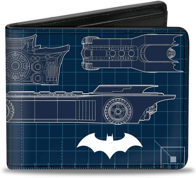 Billetera Bifold Hombre, Piel Vegana, Batman Batmobile Blueprint