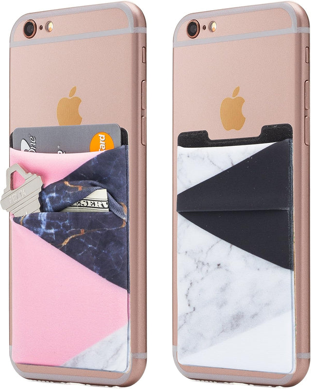 Cardly Cartera | Soporte para tarjetas y dinero para teléfono celular | Se pega en el estuche (rosa y negro y mármol dividido)