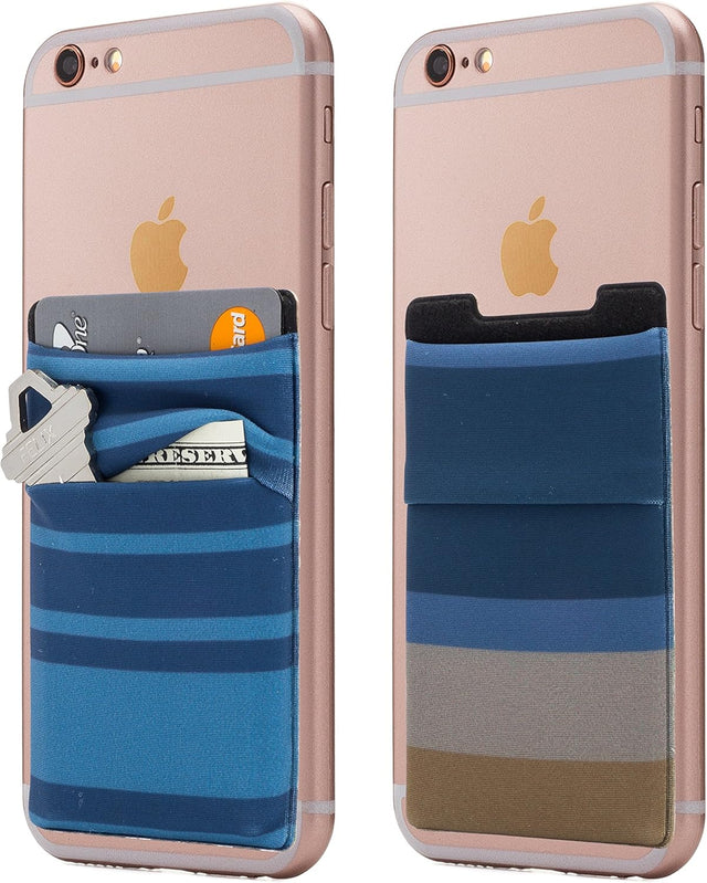 Cardly Cartera | Soporte para tarjetas y dinero para teléfono celular | Se pega en la funda (rayas azules y bronceadas)