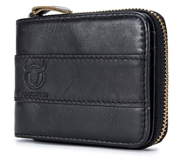 Cartera de cuero para hombre con cremallera alrededor RFID