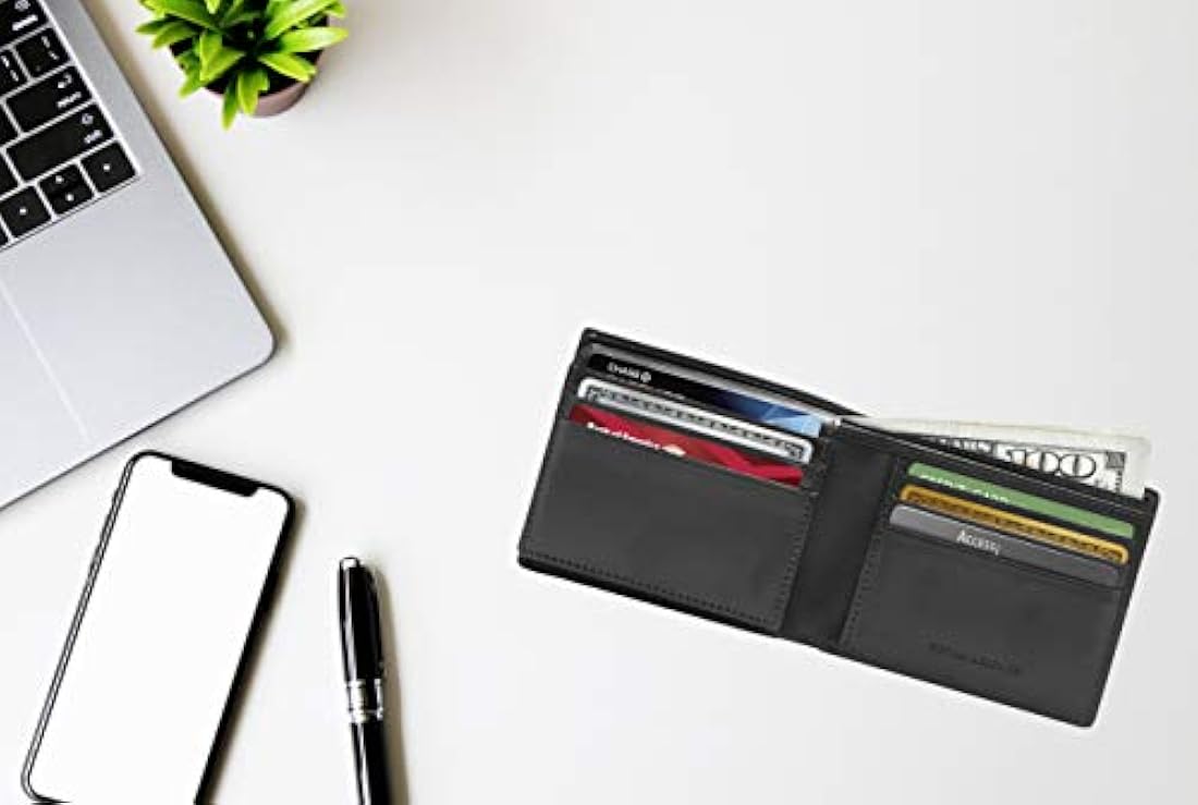 *** Características *** La cartera plegable está hecha de piel sintética vegana que es extremadamente suave y duradera. Su textura suave hace que esta cartera sea limpia y elegante, para usar un diario.Dimensiones: 4.75 pulgadas x 3.56 pulgadas x .05 pulgadas.Esta cartera es extremadamente segura y confiable, que no permite que sea apropiada para su información. Guarda tus tarjetas de crédito con chip RFID, licencia de conducir, tarjetas de seguros, y toda tu información importante, con seguridad, en la cartera con tecnología exclusiva de bloqueo de RFID. Esta cartera cumple con las especificaciones FIPS-201 y garantiza la protección de su identificación y sus datos. Esta cartera tiene 6 ranuras para tarjetas de crédito, una ventana para la identificación, 2 bolsillos, y 2 partimentos para dinero. de regalo para ofrecer un regalo especial para cumpleaños, aniversarios, navidad, día del padre, padrinos de bodas, y otras ocasiones especiales. La cartera plegable de piel sinttica vegana Acceso denegado para hombre está protegido en todos los bolsillos y pliegues. Esta cartera fue creada para evitar que los ladrones se deslicen y aprendan la información de su tarjeta de crédito. Esta cartera vegana Bifold mantendr toda su información personal con nuestra tecnología de bloqueo RFID de alta gama. Esta cartera para hombre no solo mantiene toda tu información personal segura, sino que también tiene todo lo que necesitas en una cartera. Contiene 9 ranuras para tarjetas de crédito, 2 partimentos para efectivo de longitud pleta, una ventana de identificación de acceso fácil y 2 bolsillos deslizantes. Viene en una bonita caja de regalo, por lo que es el regalo perfecto para todas las ocasiones. Situado en Los ngeles, California, estamos en el epicentro de la tecnología y el diseño determinado la solución no solo a una cartera de moda, sino también seguro.