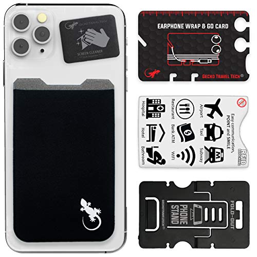 Gecko - Cartera de licra para teléfono celular con adhesivo, para tarjetas de crédito y efectivo
