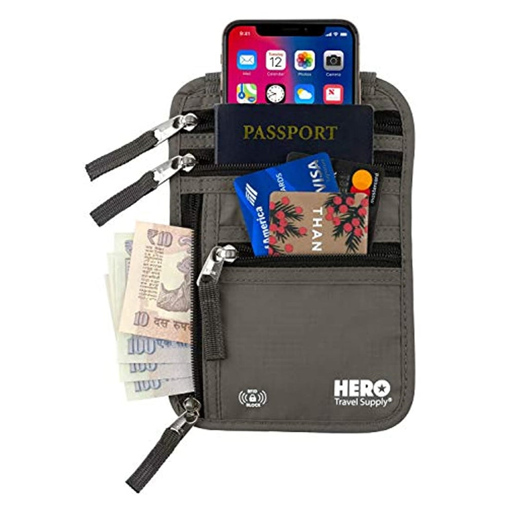 Portadocumentos de viaje estilo cartera con bloqueo RFID