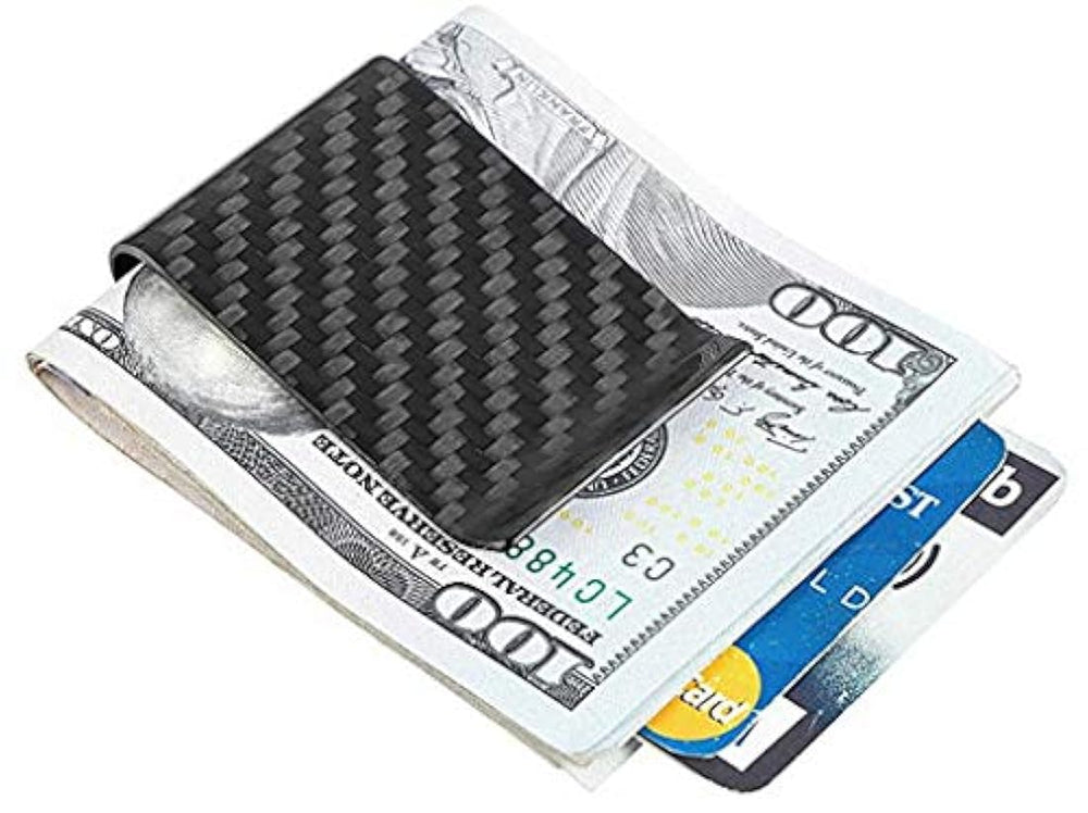 Travelambo - Monedero de fibra de carbono con clip frontal