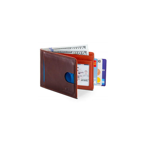 Billetera delgada de piel auténtica con bloqueo RFID