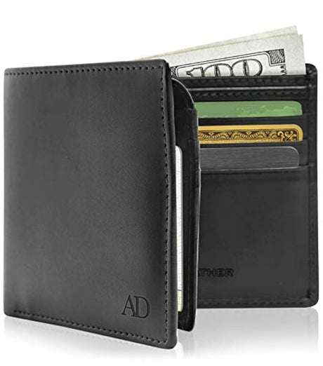 Cartera delgada de piel con bloqueo para hombre