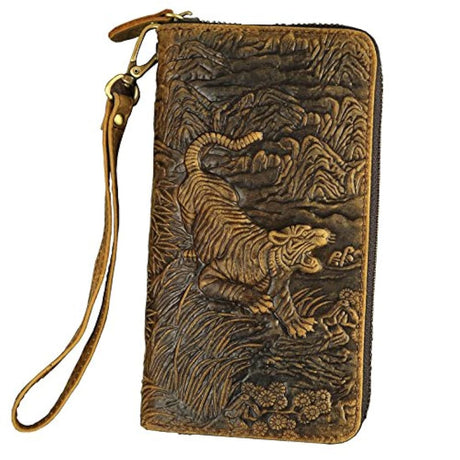 Cartera larga de piel de grano completo con acabado quemado