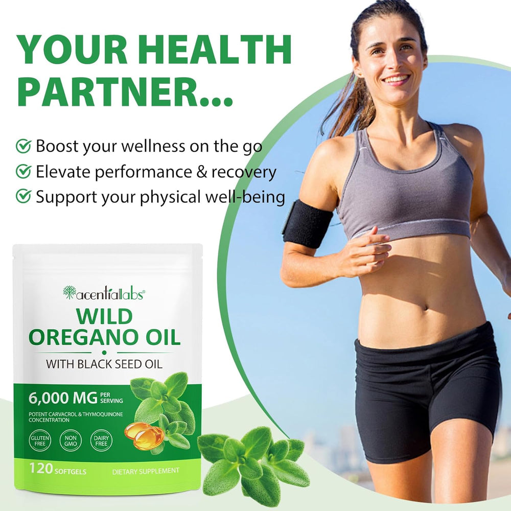 Aceite de Orégano con Semilla Negra, 2 en 1, 6000mg, 120 caps