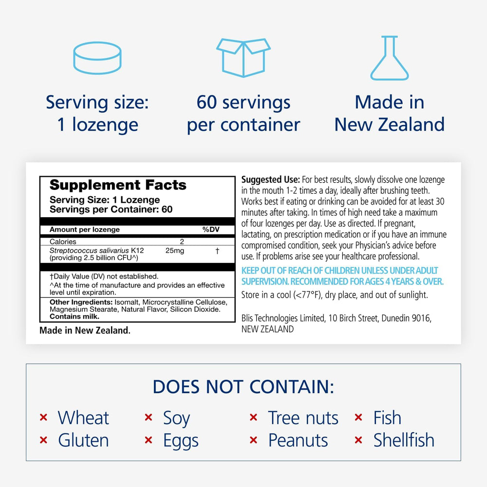 BLIS ThroatHealth Probióticos orales, 2.5 mil millones Cfu, 60 unidades