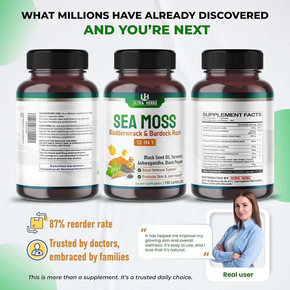 Cápsulas de Alga Marina Orgánica con Aceite de Negro, 150 uds