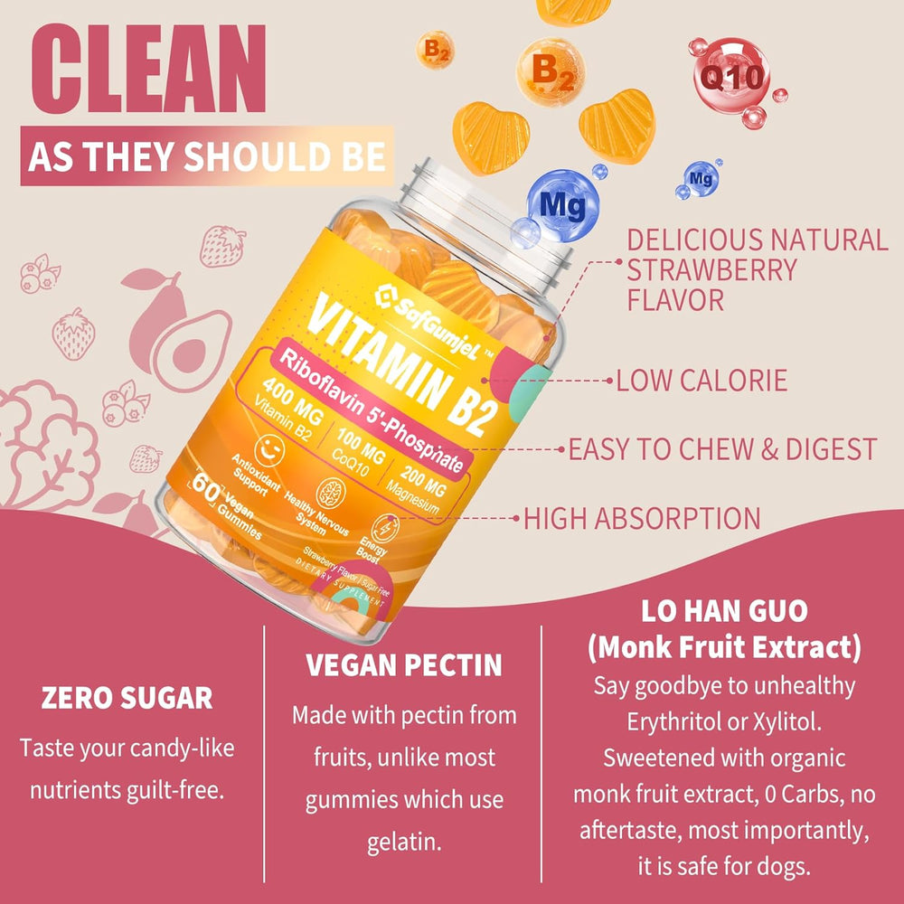 Gomitas de Vitamina B2 con Magnesio y CoQ10, 120 u.