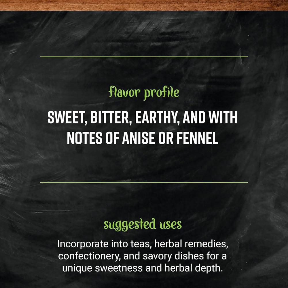 DE RAÍZ DE REGALIZ - El de Raíz de Regaliz de Frontier Co-op se deriva de la raíz de una hierba perenne nativa de Europa y A conocida por su distintivo sabor a regaliz. MEJORES USOS - Este de raíz de regaliz orgánico certificado es un ingrediente versá perfecto para dar sabor a alimentos y bebi así por su potencial uso tónico herbal revitalizante. POR QUÉ RAR A GRANEL - rar a granel tiene numerosos benefic principalmente ahorrándot y ayudando a proteger el medio ambiente al reducir los dañinos desechos de envases de un solo uso. Nuestro nuevo empaque a granel es fácilmente reciclable y ayudará a mantener más de 2 millones de contenedores de plástico y bolsas fuera de los vertederos cada año. COMPROMETIDOS CON LA Y EL PL A - Nuestros programas de abastecimiento sostenible enzan con un romiso e inversión en nuestros productores. Apoyamos proyectos esenciales educac infraestructura méd iniciativas de agua dulce y prácticas agrícolas sostenibles. A través de asociaciones mutuamente beneficio estamos decididos a obtener ingredientes de manera ética y responsable. SOBR - Cooperativa Somos Frontera. Fuertes con 50.000 propietarios miembros y una fuerza poderosa para el bien en el mundo. Como una empresa éticamente rometida con las hierbas y espec estamos unidos por nuestra misión de poner a la y al pl a antes que las ganancias. ? Ver más detalles del producto El de Raíz de Regaliz de Frontier Co-op se deriva de la raíz de una hierba perenne nativa de Europa y A conocida por su distintivo sabor a regaliz. Este de raíz de regaliz certificado orgánico es un ingrediente versá perfecto para dar sabor a alimentos y bebi así para su uso potencial tónico herbal revitalizante. Comprar a granel tiene numerosos benefic ahorra y ayudar a proteger el medio ambiente al reducir los dañinos desechos de envases de un solo uso. Nuestro nuevo empaque a granel es fácilmente reciclable y ayudará a mantener más de 2 millones de contenedores y bolsas de plástico fuera de los vertederos cada año. Comprometidos con la y el plan nuestros programas de abastecimiento sostenible enzan con un romiso e inversión en nuestros productores. Apoyamos proyectos esenciales educac infraestructura méd iniciativas de agua dulce y prácticas agrícolas sostenibles. A través de asociaciones mutuamente beneficio estamos decididos a obtener ingredientes de manera ética y responsable. Somos Frontier Co una fuerza poderosa de bien en el mundo con 50,000 propietarios miembros fuertes. Como empresa éticamente rometida con las hierbas y espec estamos unidos por nuestra misión de poner a la y al pl a antes que las ganancias.