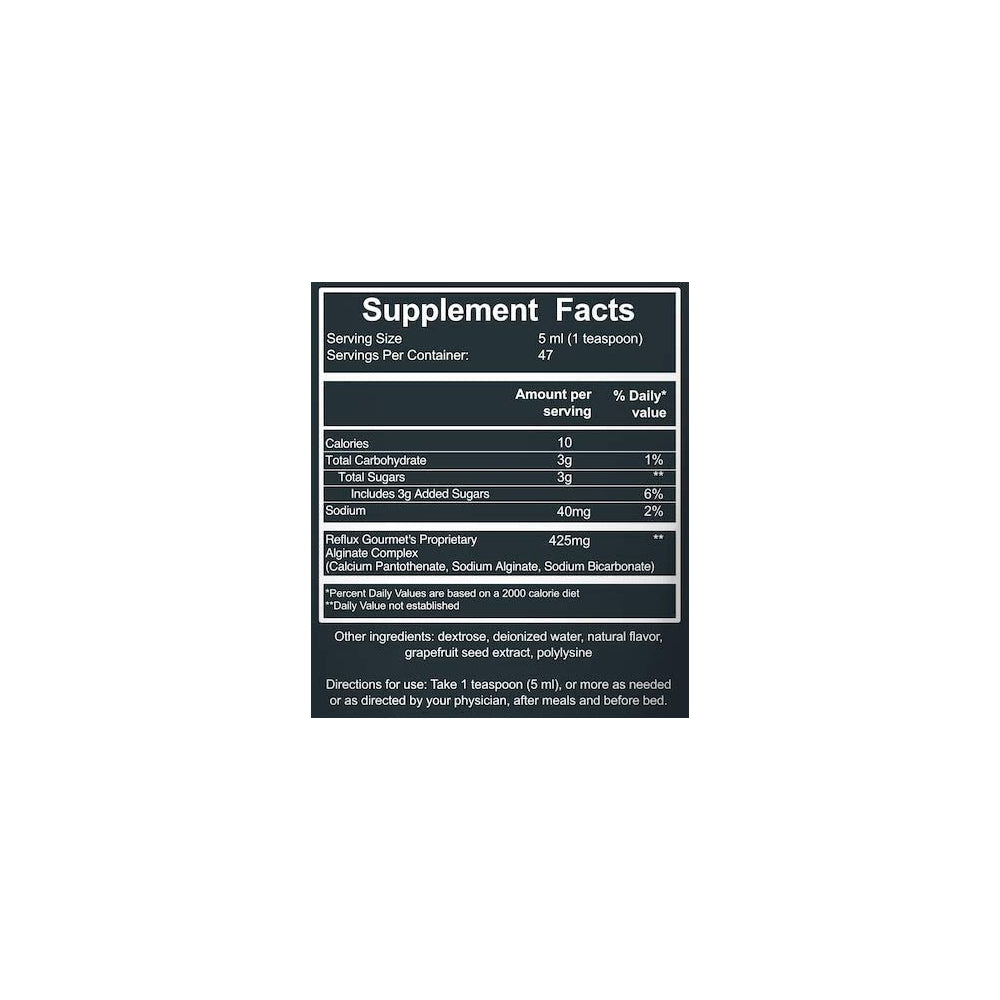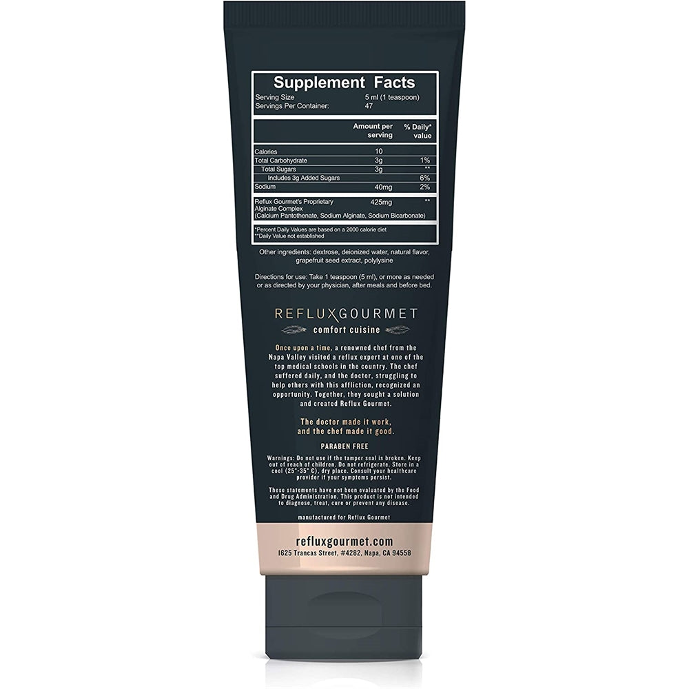 Detener el reflujo: Reflux Gourmet fue fundada por dos médicos con más de 40 años de experiencia especializada inada a la vanguardia del cuidado de la que sufren de refl y un chef famoso que sabe lo que se siente hacer el sufrimiento. Nuestro suplemento natural para aliviar la acidez estomacal fue innovado por estos expertos únicos para trabajar de forma segura y efi y saborear delicioso! ¿Por qué creamo de rescate? En Reflux Gourmet queríamos crear una opción segura totalmente natural para aquellos que sufren de reflujo. Si alguna vez te has encontrado investigando términos "alivio natural del reflujo ácido ác alivio natural de la acidez estoma alivio de la ERGE o alivio de L esperamos que nuestro rescate de caramelo de vainilla y rescate de chocolate de menta proporcione la respuesta que has estado buscando. Déjanos rescatarte del reflujo. Terapia de alginato: el algin utilizado de forma segura en la industria alimentaria durante más de 100 a se deriva de algas marinas. Una vez tomada nuestra fórm el alginato forma un revestimiento protector en la garga el esófago y el estómago que ayuda a aliviar o prevenir las manifestaciones de reflujo. Cuando el alginato llega al estóm forma una balsa protectora similar al gel que flota en la parte superior del contenido del estómago. Esta balsa bloquea el esóf evitando físicamente el reflujo del contenido del estómago en el esófago. natural: la única terapia de alginatos hecha con ingredientes naturales que son libres de glicer potasio y sin parabenos. Hecho de principio a fin en el norte de California. Hecho letamente de ingredientes totalmente naturales considerados seguros para los niños y durante el embarazo. Sin efectos secundarios conocidos. Cuándo tomar: instrucciones generales de uso: toma una cucharadita (0.2 f o más según sea necesario o según las indicaciones de tu méd después de las das y antes de acostarte.