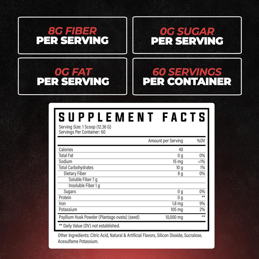 Suplemento de Fibra Huge, 10g Psyllium, Salud Digestiva, 60 Serv.