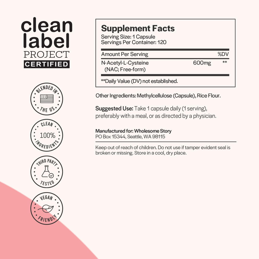 Suplemento NAC Wholesome Story 600 mg | Soporte Salud 120 Caps