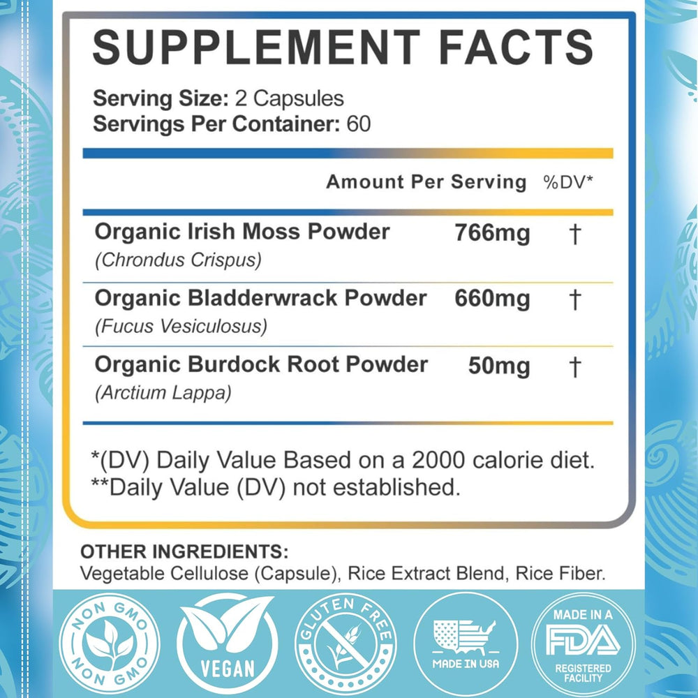 Viva Nutra Cápsulas Orgánicas de Musgo Irlandés, Bladderwrack y Bardana
