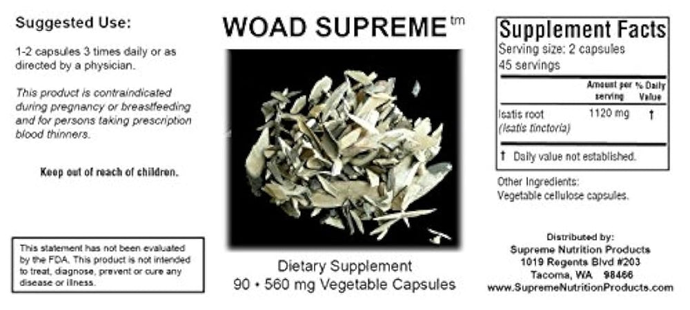 woad Supreme-90 Cápsulas, polvo de raíz de isatos Tinctoria