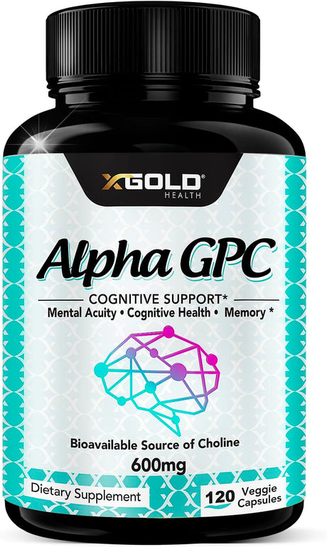 Suplemento de Colina Alpha GPC 600mg, Fuente Altamente Pura y Bioavailable