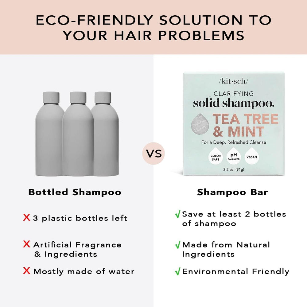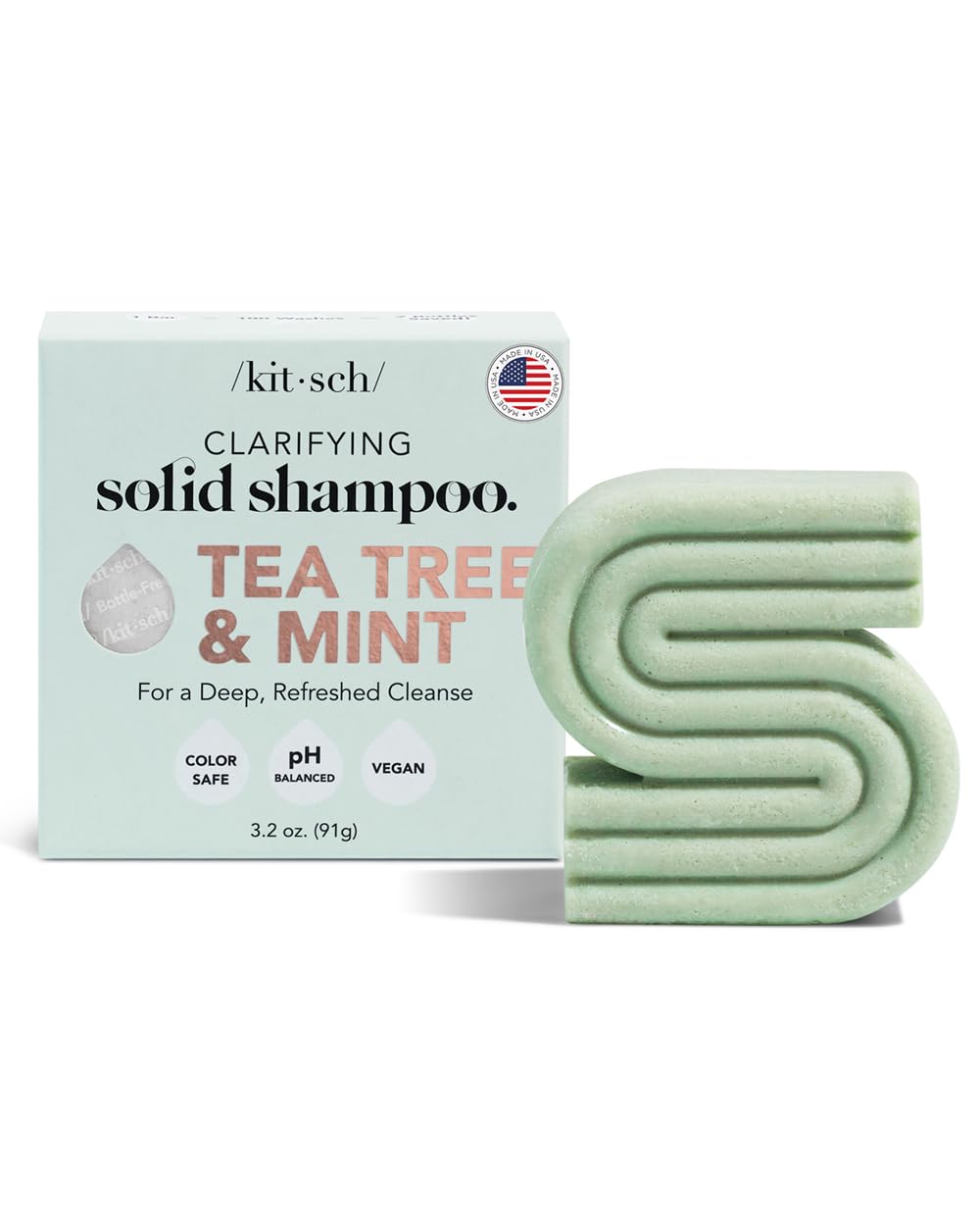 Kitsch Forma del producto Barra Tipo de cabello Todo Fragancia Fre menta Rango de edad (descripción) Adulto Champú 2 en 1: La barra de champú clarificante Kitsch está elaborada con aceite de árbol de té y me que ayudan a eliminar los aceites o productos acumulados en el cabello. También ayuda a calmar la irritación del cuero cabelludo y a atir la caspa. Vegano y sin crueldad: Esta barra de champú para el cabello no contiene sulfa silico parabe ftalatos ni otros productos químicos agresivos. Nuestro champú clarificante para hombres y mujeres es vegano y libre de cruel por lo que puedes sentirte bien al utilizarlo en tu cabello. PARA LA PICAZÓN DEL CUERO CABELLUDO: El aceite de árbol de té de esta barra de champú ayuda a aclarar y revitalizar el cuero cabell mientras que la menta deja el cabello con un olor fresco y lim lo que la convierte en la inación perfecta para un champú anticaspa. LIMPIO Y SALUDABLE: Nuestro champú para mujeres y hombres es lo suficientemente suave para su uso diario y dejará tu cabello limpio y sano. Ecológicas: La barra de champú clarificante Kitsch Tea Tree & Mint está hecha con ingredientes naturales y se estima que dura 100 lavados. Esta barra ahorrará dos botellas de champú líqu por lo que es ecológica. La barra tiene un refrescante aroma a árbol de té y menta y es un excelente champú para el cabello graso