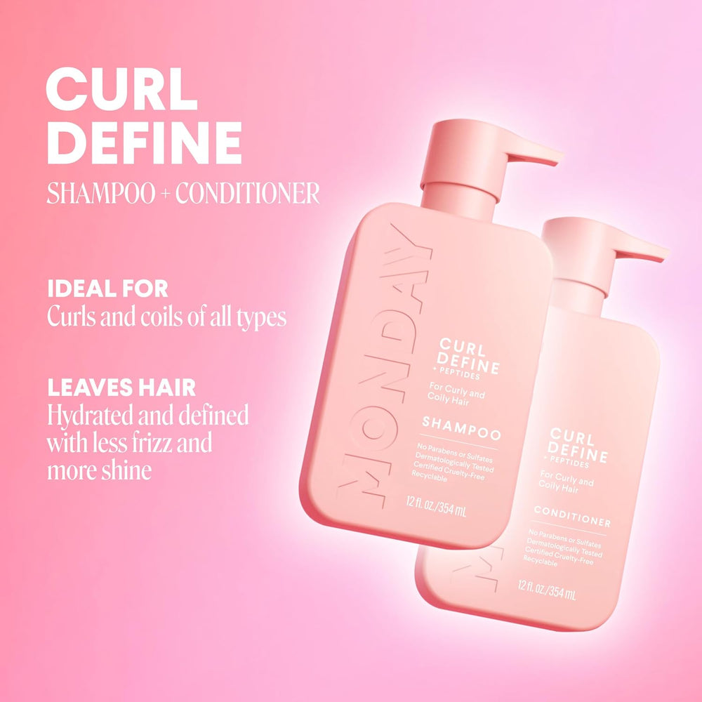 Beneficios del producto Potenciador de rizos Material libre de Sin Parabe Sin Ftalato Forma del producto Loción MONDAY HAIRCARE Tipo de cabello Rizado Sobre este artículo Champú y acondicionador rizado: el champú CURL DEFINE de MONDAY Haircare es una fórmula de apoyo que contiene péptidos hidratantes e ingredientes naturales suaves aceite de coco para domar el encrespamiento y mejorar el bri mientras nutre y fortalece el cabello. Los rizos se dejan hinchables y sin encrespamiento. Fórmulas modernas: Nuestras fórmulas premium están dermatológicamente proba equilibradas con PH y libres de sulfatos y parabenos. En su lu utilizamos ingredientes naturales hidratantes aceite de c manteca de kar ácido hialurónico y queratina para nutrir y restaurar. PREMIADO: Nuestra gama de cuidado del cabello tiene 16 importantes premios de belleza y recuen incluido un Allure 2023 Best of Beauty Aw el premio InStyle 2022 Best Beaut el premio Glamour 2021 Beauty Award y un premio Cosmo 2021 Holy Grail Beauty Award. Certificado libre de crueldad: Todos los productos del lunes están aprobados libres de crueldad bajo el programa Leaping Bunny por Cruelty Free International. También estamos orgullosos de ser reconocidos por PETA una que no realiza pruebas en animales. Botellas reciclables: nuestras pequeñas botellas rosadas no solo se ven muy bien en tu b sino que están hechas de plástico reciclable para ayudar a minimizar la huella de carbono y reducir el vertedero. Una victoria para tu cabello y para el medio ambiente.