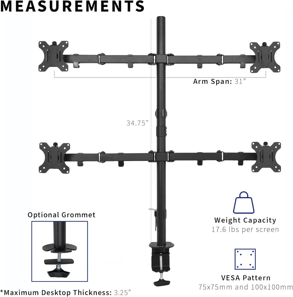 Soporte de Monitor VIVO para 4 Pantallas, Ajustable, STAND-V004