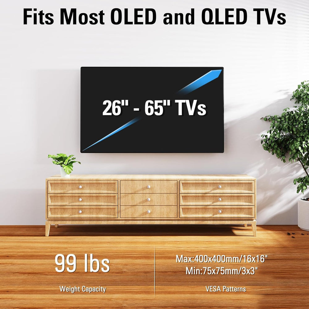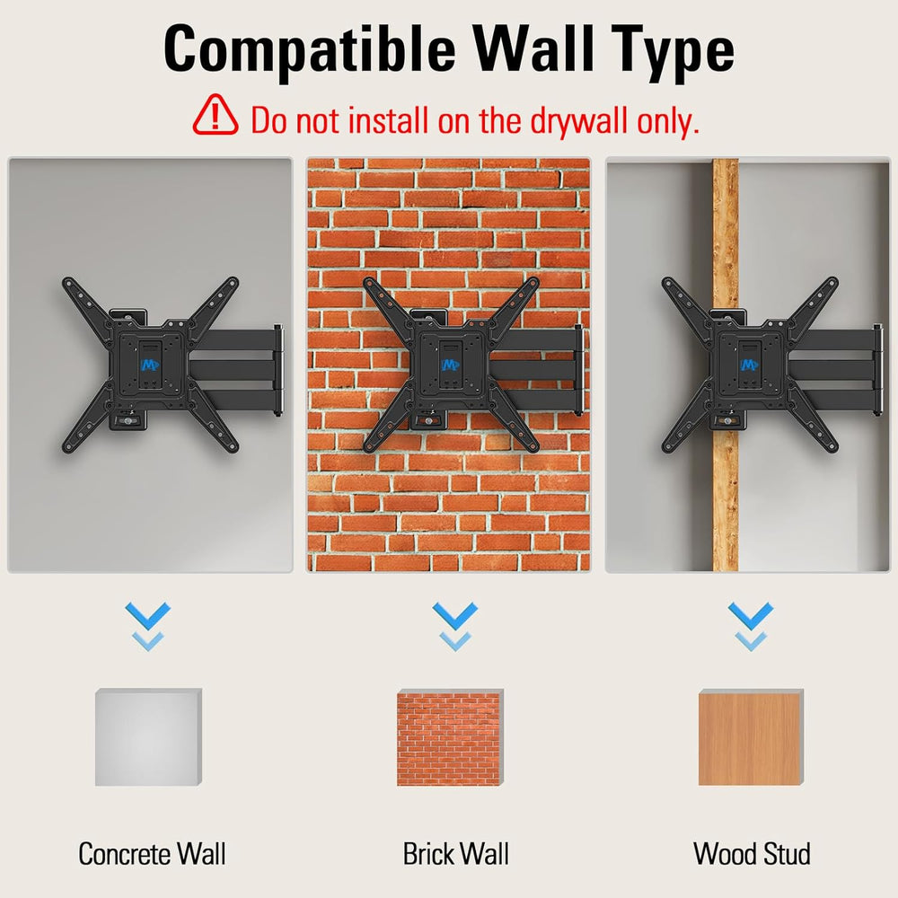 Descripción en español: Sobre este producto Versátil patibilidad: Est de pared para TV de brazo largo se ajusta a la mayoría de las pantallas de 26''-65'' y puede soportar hasta 99 libras. patible con VESA mínima de 75x75mm y máxima de 400x400mm. Es perfecto para instalar en la sala de es dormito oficina o cualquier otro lugar donde se necesite un televisor. Extensión de 30'': ¿Quieres u de pared para TV con una extensión flexible? Est de pared para TV de larga extensión se extiende 30'' desde la pared para cubrir más posiciones de visualización. Ade al retraerse a solo 3'' de la pa permite ahorrar espacio y tener un aspecto limpio. Es ideal para colocar en esquinas y poder ver la TV donde quieras. Ángulo de visualización óptimo: Est de pared para TV se puede ajustar ±4° horizontalme +5° hacia arriba y -15° hacia ab reduciendo el malestar causado por el reflejo en la TV. También permite al usuario ajustar fácilmente el ángulo de la TV girándola 90° a la izquierda y a la derecha para la mejor experiencia de visualización. Fácil de instalar: Se incluyen en el paquete del producto una variedad de tamaños de tornil separadores y arandelas para satisfacer sus necesidades de instalac así o un nivel de burbuja y una llave Allen. Seguir las instrucciones detalladas de instalación también le ayudará a pletar la instalación rápidamente. Anclajes adicionales para concreto están disponibles contactando al equipo de Mounting Dream (tamaño de anclajes para concreto: f10x50mm). Servicio a profesional: Nuestros expertos en servicio a con sede en Estados Unidos están disponibles los 7 días de la semana. Bienvenido a preguntarles cualquie relacionado con el uso de de montaje y la instalación del colgador de pared para TV. Ver más detalles del producto.