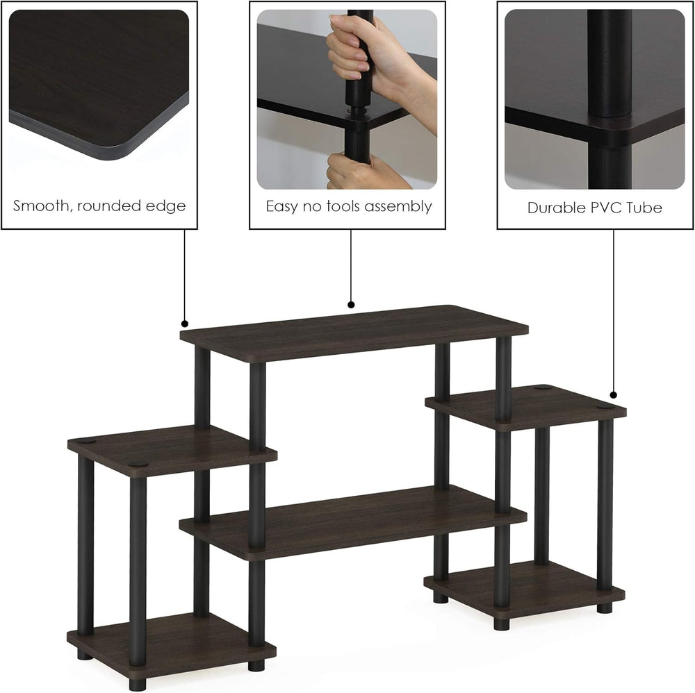 Miniserie de almacenamiento y organización para el hogar Turn-N-Tube de Furinno: Centro de entretenimiento sin herramientas. (1) Estructura única: - Estante expositor abierto. - Facilita el almacenamiento y exposición de TV u otros accesorios. - Adecuado para cualquier habitación. - Diseñado para ser duradero y eficiente. (2) Diseño inteligente: - Fácil montaje sin herramientas. - Utiliza tubos de PVC reciclado y madera puesta resistente. - Montaje en 10 minutos con mecanismo de tor girar y apilar. (3) Materiales de calidad: - Fabricado en Malasia y cumple con regulaciones CARB. - Sin mal o duradero y estable. - PVC reciclado para mayor durabilidad. Instrucciones de cuidado: limpiar con paño húmedo. No incluye artí s de decoración.