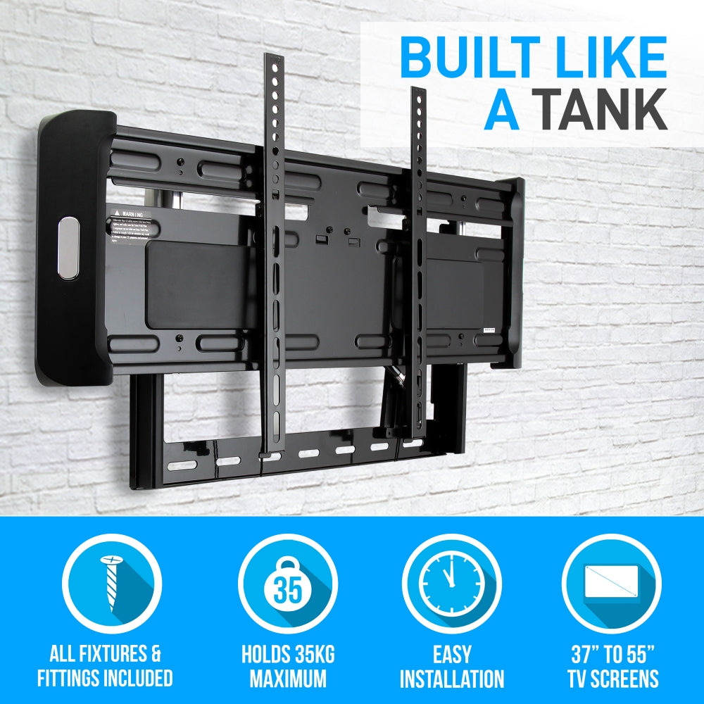 Ahorro de espacio: Pyle te ofrece universal para TV diseñado para ahorrar espacio y crear un placer de visualización ópt ya que cuenta con un diseño que se engancha fácilmente y se monta en la placa de pared. Se adapta a cualquier televisor de 37 a 55 pulgadas universal para TV: cuenta con interfaz de montaje VESA estándar (M un conjunto de estándares para la fabricación de televisores de pantalla plana y monitor de PC. Un patrón de agujeros VESA se mide tanto en distancia horizonta vertical entre los agujeros de montaje Herramientas de montaje: incluye todos los accesorios de montaje necesario s para una instalación sin licaciones. Se puede utilizar de forma segura para montaje en pared de ladrillo sólido y hormigón. Proporcio inteligente pa Smart ultrawide y otros televisores de pantalla plana Sistema de nivelación integrado: equipado con un sistema de nivel que te ayudará a instalar correctamente la unidad permitiendo una instalación rápida de montaje de TV. Su construcción duradera te permitirá colgarlo donde quieras y disfrutar de tu televisor exactamente de la forma que desees Carga máxima de 77 libras: promueve un montaje seguro y fijo de TV y puede soportar 44 a 77 libras de carga. Diseñado para adaptarse a televisores de alta defin pla televisores inteligentes ultra anchos – d Sam Magna Panaso Sh Tosh Vizio y más