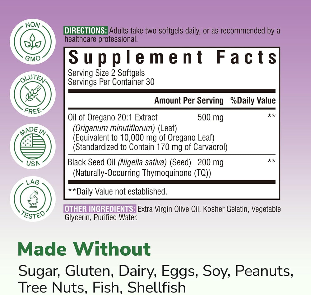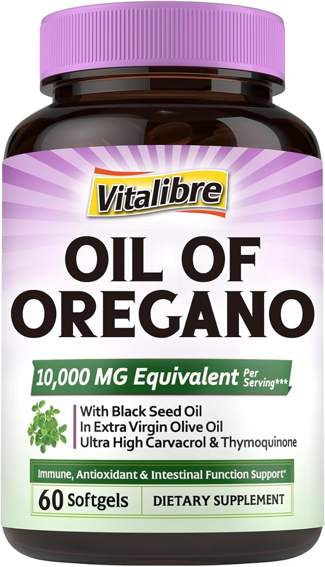 Aceite de Orégano 10000mg con Semilla Negra, 60 cápsulas