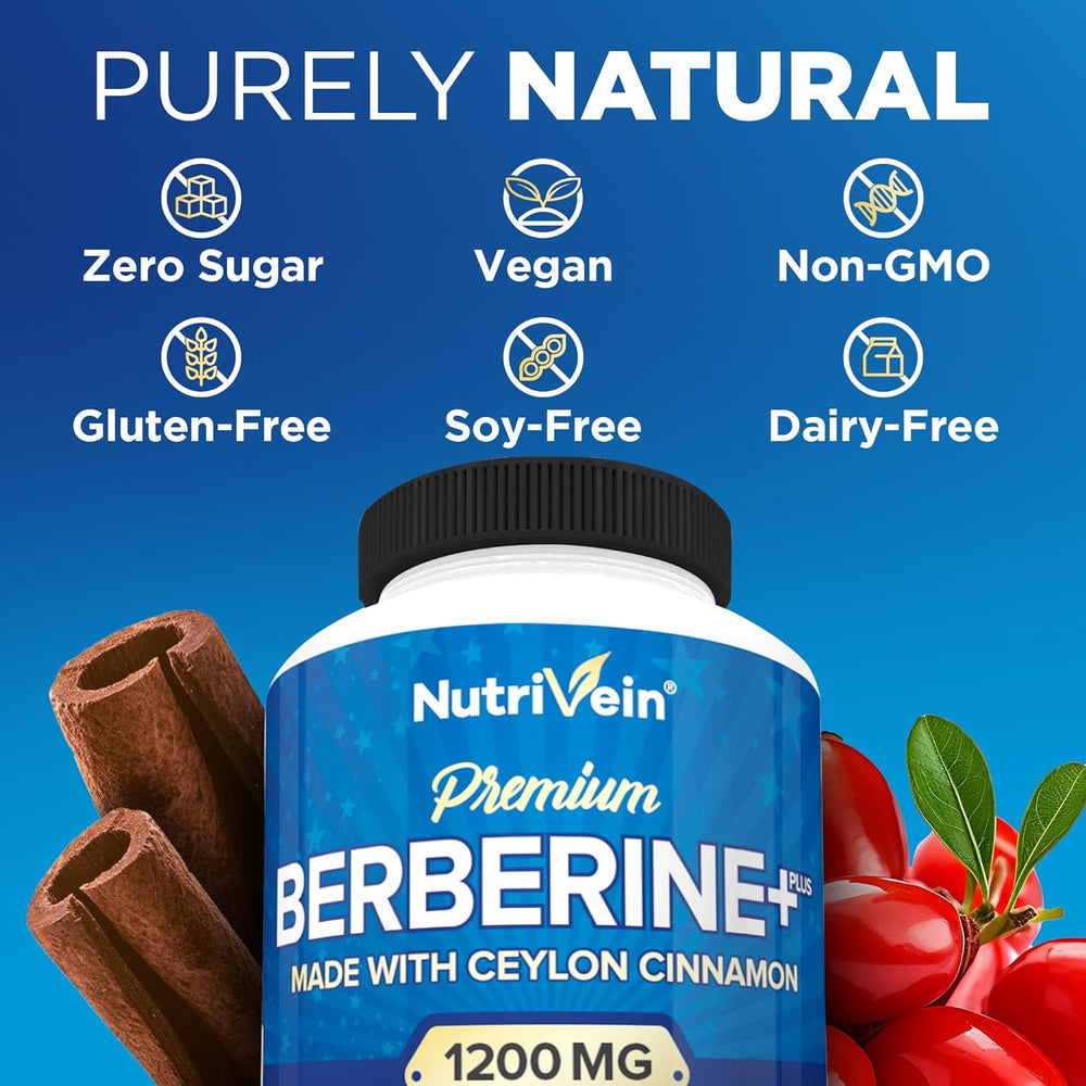 About this item ? Premium Berberine Plus Organic Ceylon Cinnamon - Our Natural Berberine provides you with 1200mg per serving with 200mg Organic Ceylon Cinnamon. Powerful fo ing immune system. Berberine also helps t increased concentrat memory and overall well-being. It als s gastrointestinal health. ? Powerful Health Benefits Of Berberine - Nutrivein berberine features berberine hydrochlor a form that has been widely studied and may be absorbed more easily by the body. Berberine is a plant alkaloid and has antioxidant properties. We use only the highest-quality Berberine HCL (Berberis Aristata) ? Helps Mantain Healthy Bod an Optimal Wellness - Many people take Berberine for a variety of health benefits t weight l PCOS and AMPK regulation. Some choose to bine it with milk this curcu silyma Ceylon cinna or alpha lipoid acid (ALA). mon misspellings include berb berbe burbur berbur barber berber or berberine hci. ? Tasteless And Easy To Swallow Dose - With our whooping twice daily 1200mg d you'll get the help you need without having to swallow a huge pill. Our size 00 ules are vegan vegetarian friendly and soft easy-to-swallow ules. You will be able to reap all the benefits stress free and in the form of tiny ules. Ou is Made in the USA in a registered and inspected facility that is (GMP) pliant. I also GMO free and Third Party Tested. Health i number 1. ? Trusted Brand - Satisfaction Assured - If our Berberine Hc pills do not bring noticeable value to you and you don't absolutely love t your purchase is on us; No Questions Asked; Our world-class customer service wants you to be satisfied with your purchase; Absolutely no risk; The bottle es with the Nutrivein Satisfaction Pledge for 30 days; Have this healthy weight managemen by your side. ACERCA DE ESTE PRODUCTO - Berberina Premium con Canela de Ceilán Orgánica - Beneficios para la salud de la berberina - Ayuda a mantener un cuerpo sano y bienestar óptimo - Fácil de tragar y sin sabor de confianza garantizada
