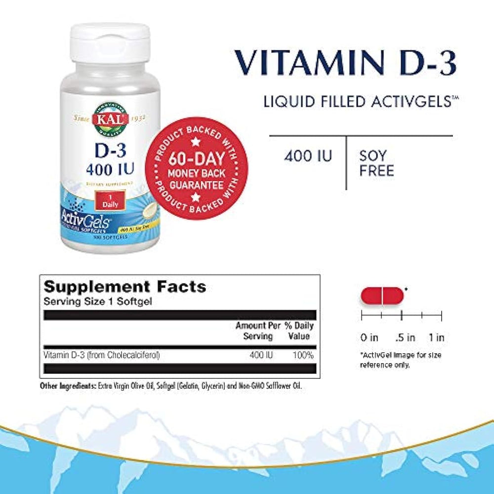 Kal D-3 400 IU cápsulas blandas, 100 unidades