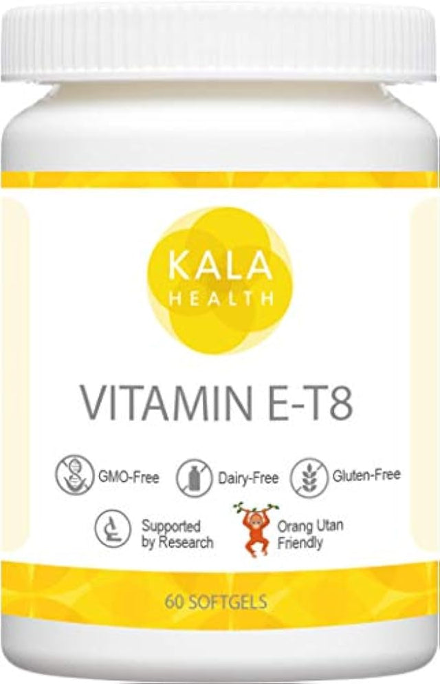 Kala Health Vitamina E-8 softgels – Proporciona todas las 8 formas de vitamina E incluyendo 4 tocoferoles y 4 tocotrienoles el suplemento de vitamina E más completo disponible, 60, 60