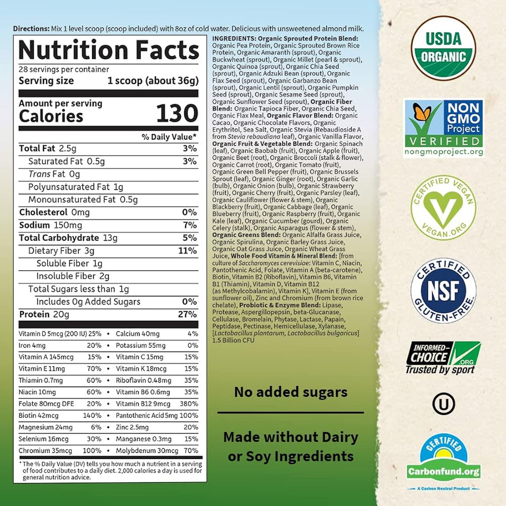 Suplemento Alimento crudo orgánico Garden of Life Chocolate