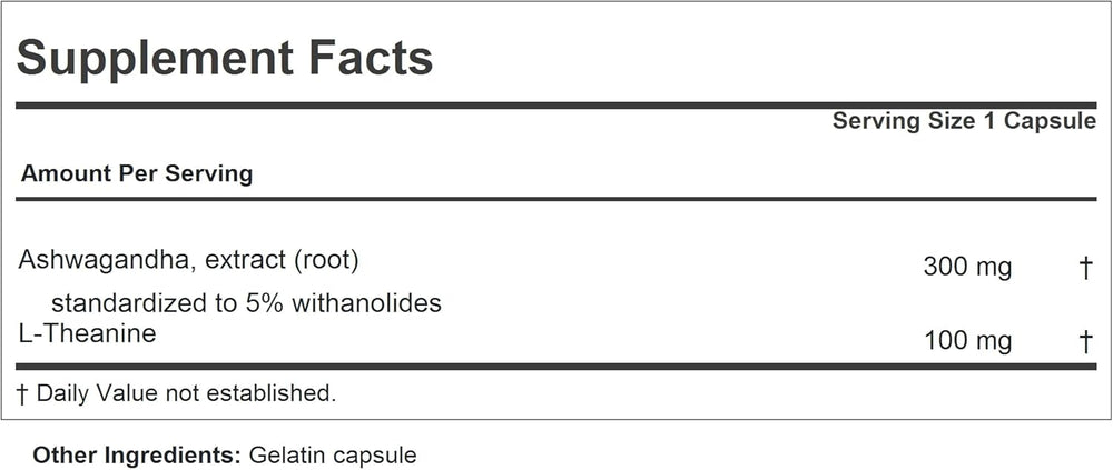 Suplemento Ashwagandha teanina 60 cápsulas Extracto está agotado y se enviará tan pronto como vuelva a estar disponible.