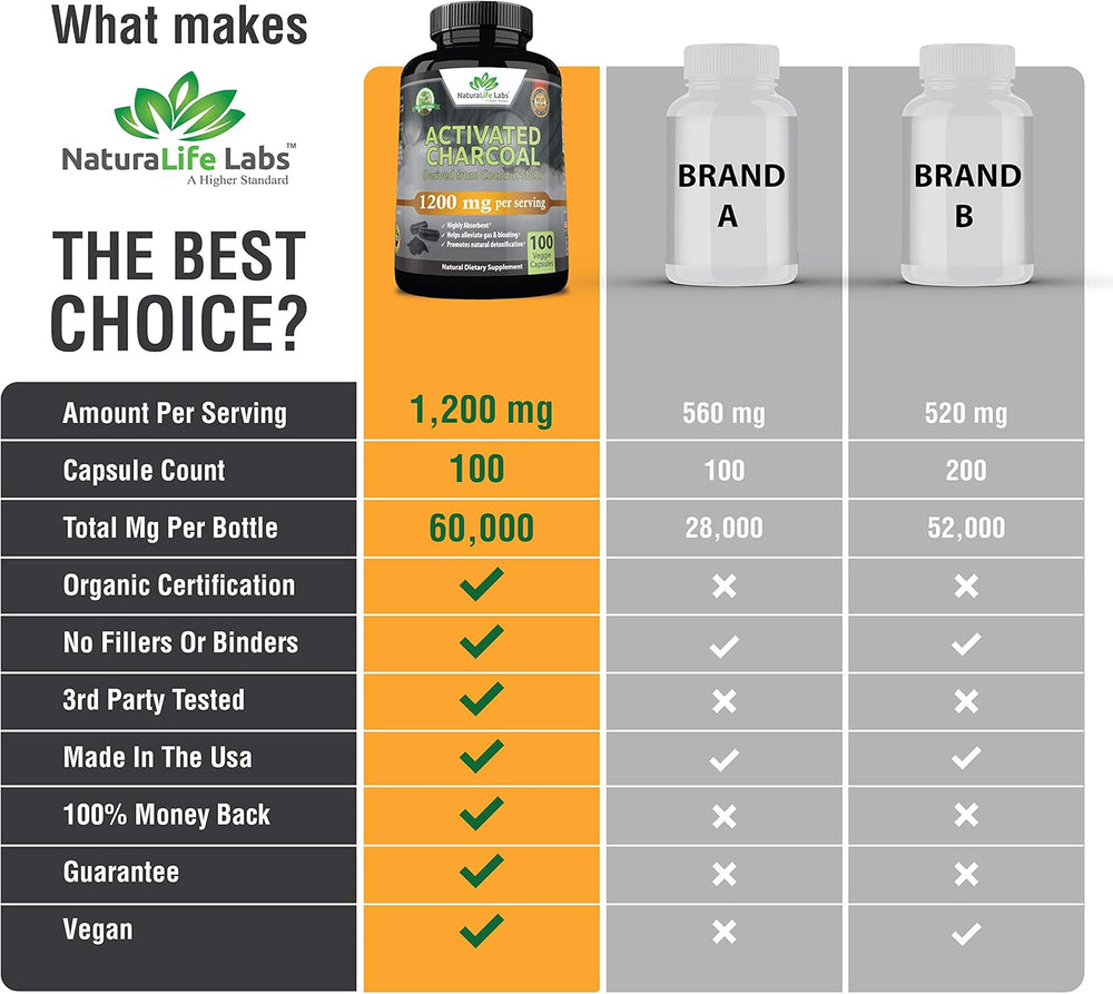 Suplemento Cápsulas de carbón activado 1200 mg 100 cáp