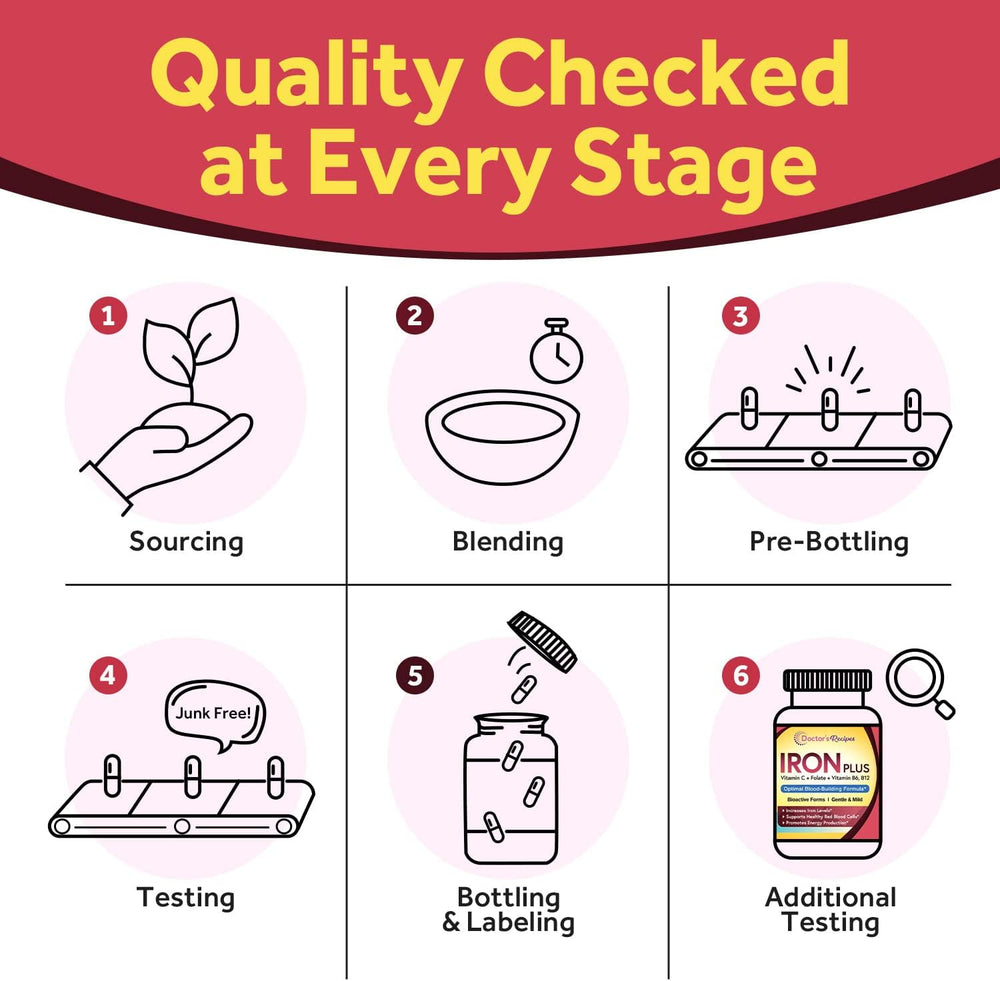 Doctor Recipes Sabor Sin sabor Tipo de suplemento primario Hierro bisglicinato ferroso) 36 mg Recuento de unidades 60.00 Count Forma del producto Cápsula Dimensiones del artículo LxWxH 1,75 x 1,75 x 3,5 pulgadas Beneficios del producto Promover la función cognitiva* Rango de edad (descripción) Adulto Información del empaque Botella Número de artículos 1 Fórmula óptima para la construcción de *: Nuestro Iron Plus es un lejo de hierro fuerte en lugar de solo hierro por sí mismo. Está formulado para abordar diferentes tipos de anemia causada por deficiencia de hie folato o vitamina B12. * Con hierro más vitamin vitamina B9 esta inación óptima está disponible en una cápsula vegetal fácil de tra una forma conveniente de brindarle (especialmente a las niñas menstruan mujeres embaraza veganos y vegetaria atletas) un apoyo sanguíneo saludable y una producción de energía eficiente. * Formas bioactivas y absorción mejorada: Cada cápsula entrega 36 mg de hierro elemental en una forma no estreñente (bisglicinato ferro que es menos probable que irrite el estómago que otras formas de hierro. Junto con 5 mg de vitamina B6 (piridoxal 5'-fosfa 667 mcg de DFE de folato (L-5-MTHF) y 30 mcg de vitamina B12 (metilcobalami todas las vitaminas B listas para tejidos necesarios en la fabricación de glóbulos rojos. * También incluye 30 mg de vitamina C para aumentar aún más la absorción de hierro de su cuerpo. Nutre su *: Nuestro cuerpo requiere una cantidad adecuada de glóbulos rojos saludables para satisfacer las necesidades de transporte de oxígeno. El hierro se utiliza en la producción de hemoglobina que transporta específicamente oxígeno. Cuando está b los niveles de energía disminuyen. * Doctor Recipes Iron Plus la diferencia en aumentar los niveles de hierro y aumentar los recuentos de glóbulos rojos. * Ayuda a suministrar energía natural sostenible durante todo e mejorar su rendimiento y calidad de v también mantiene la fatiga y la debilidad a raya durante el período. * Fabricado con orgullo en los Estados Unidos: nuestra fórmula de fuerza avanzada está cargada con ingredientes de la más alta calidad y de origen natural en una instalación certificada por GMP en los Estados Unidos. El suplemento de hierro Doctor Recipes es p natu vegano y si sin s gluten ni lácteos. Opciones persona soluciones profesionales: En Doctor Reci creemos que los productos y envio deben hacerse de manera profesional y con entusiasmo. Doctor Recipes nutre la bondad dentro de tu cuerpo para ayudarte a mantener un estilo de vida saludable. Tenemos todo lo que necesitas y nada que y siempre sabrás lo que estás poniendo en tu cuerpo. El nombre de esta excepcional deja poco a la imaginac y es un título bien merecido.
