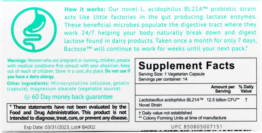 Suplemento de intolerancia a la lactosa enzimas 14 und
