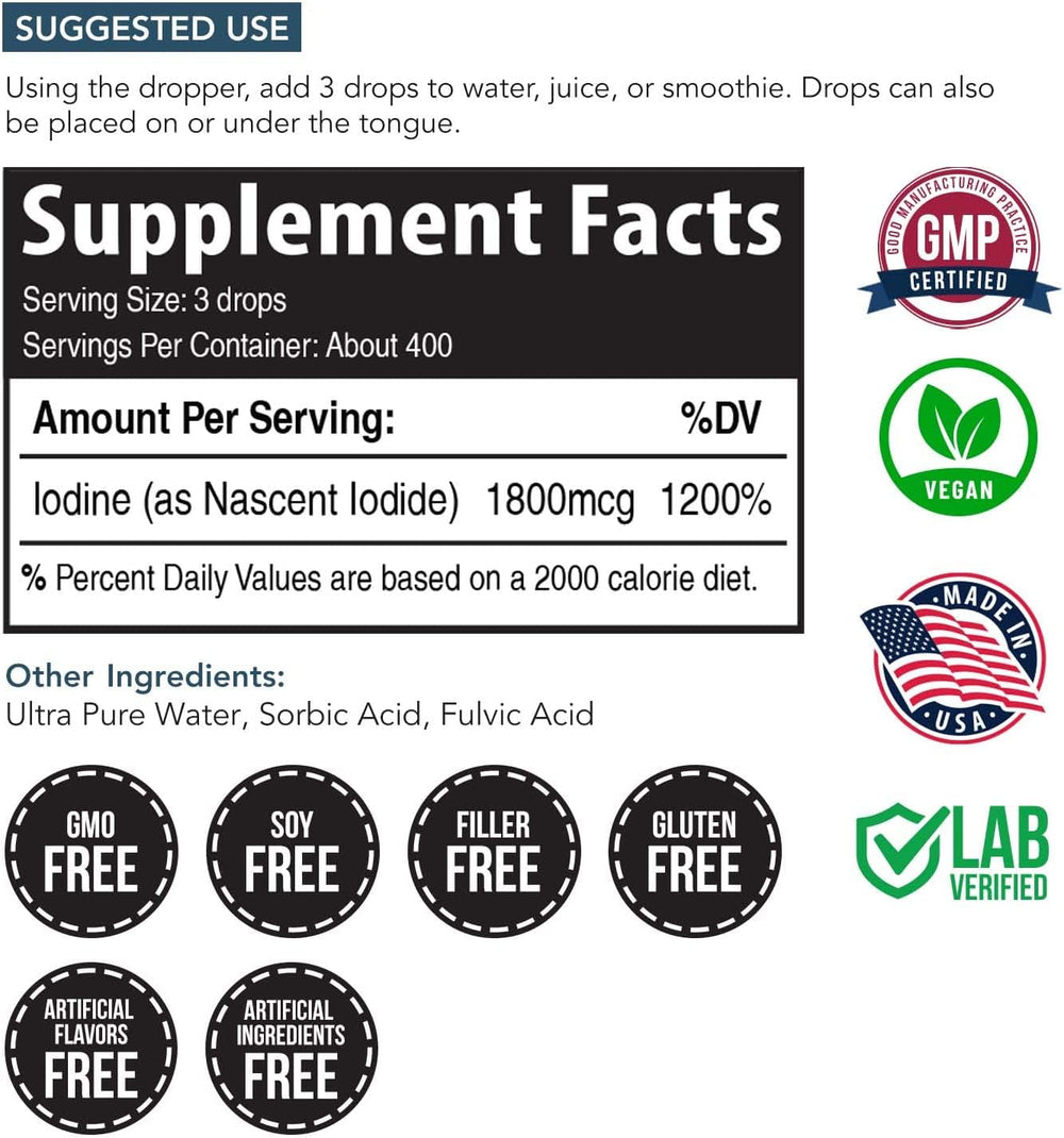 Suplemento de yodo 400 porciones vegana 1800 mcg 59ml