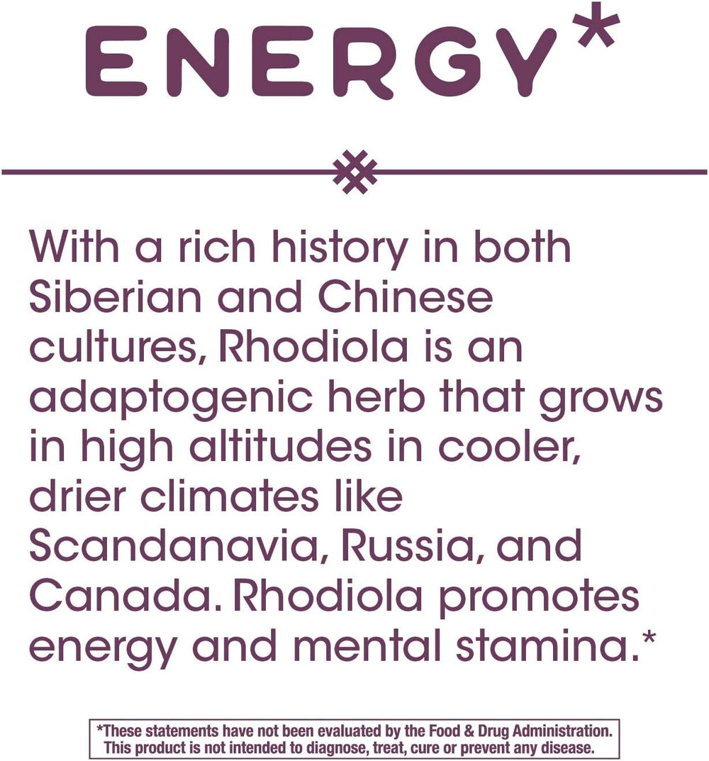 Apoya la energía* Con una rica historia tanto en las culturas siberianas chi Rhodiola es una hierba adaptogénica que crece a altas altitudes en climas más fríos Escandina Rusia y Canadá. La rodiola promueve la energía y la resistencia mental* Adaptogénico Fabricado con la calidad en la que confías de Nature Way Botellas hechas de 97 plástico reciclado postconsumo