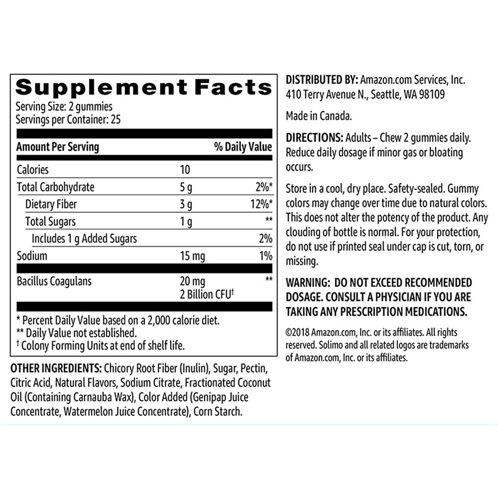 Suplemento Gomitas masticables de acción prebiótica 50 un