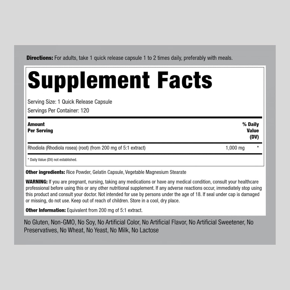 Suplemento herbal Rhodiola Rosea Cápsulas 1000 mg 120 un