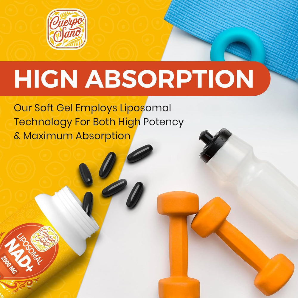 Cuerpo Sano Sabor Sin sabor. Tipo de suplemento primario NAD+ 2000mg Recuento de unidades 60.00 Count Forma del producto Cápsula Blanda Dimensiones del artículo LxWxH 1 x 1 x 2 pulgadas Tipo de dieta Sin Gluten Beneficios del producto Gestión de la energía,Apoyo inmunológico,Cuidado de la piel,Mejora del metabolismo Rango de edad (descripción) Adulto Información del empaque Botella ?Suplemento NAD+ de alta potencia de 2,000 mg: Cuerpo Sano presenta la auténtica coenzima NAD o N una potencia celular que alimenta el metabolismo energético a nivel celular. A medida que el proceso de envejecimiento afecta a nuestras reservas de N contribuyendo a una disminución en nuestro bienestar gene eleva tu vitalidad con NAD+ liposomal genuino y experimenta una mayor absorción de nutrien sobrealimentando la producción d ¡la principal fuente de energía de tu cuerpo! ?Alta absorción y más eficiencia: nuestro suplemento liposomal NAD+ lleva la absorción al siguiente ni superando a los suplementos tradicionales de NAD o NADH y demostrando ser más eficiente que la ribósido de nicotinamida. A través de nuestro sistema de administración liposomal especializado N los ingredientes activos de NAD+ se transportan de manera eficiente directamente a sus célu logrando hasta 10 veces mayor biodisponibilidad que las cápsulas orales típicas de NAD+. Tu cuerpo no merece menos. ?Calidad superior garantizada: en Cuerpo S mantenemos altos estándares para suplementos NAD Plus. Nuestros ingredientes liposomales NAD+ no son OGM y sin glu y cada lote se somete a rigurosas pruebas par una calidad premium. La didad es primordial con nuestro suplemento liposomal N que cuenta con cápsulas fáciles de tragar que simplifican su rutina diaria. Tomar 2 pastillas del suplemento NAD+por día es todo lo que se necesita para maximizar los resulta ahorrándole tiempo . ?Energía celular desatada: eleva tu producción de energía celular y bienestar general con nuestro suplemento liposomal NAD+. NAD+ es una coenzima importante que beneficia las funciones cotidianas de su cue la defensa del envejecimie la función cerebral y la integridad mitocondrial. Experimente un aumento profundo en los niveles de energía y bueno para el bienestar celular sin la necesidad de ingredientes adicionales.