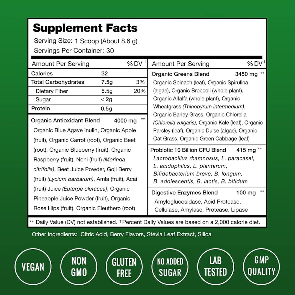 Suplemento Superalimento vegetales orgánicos en polvo 20 por