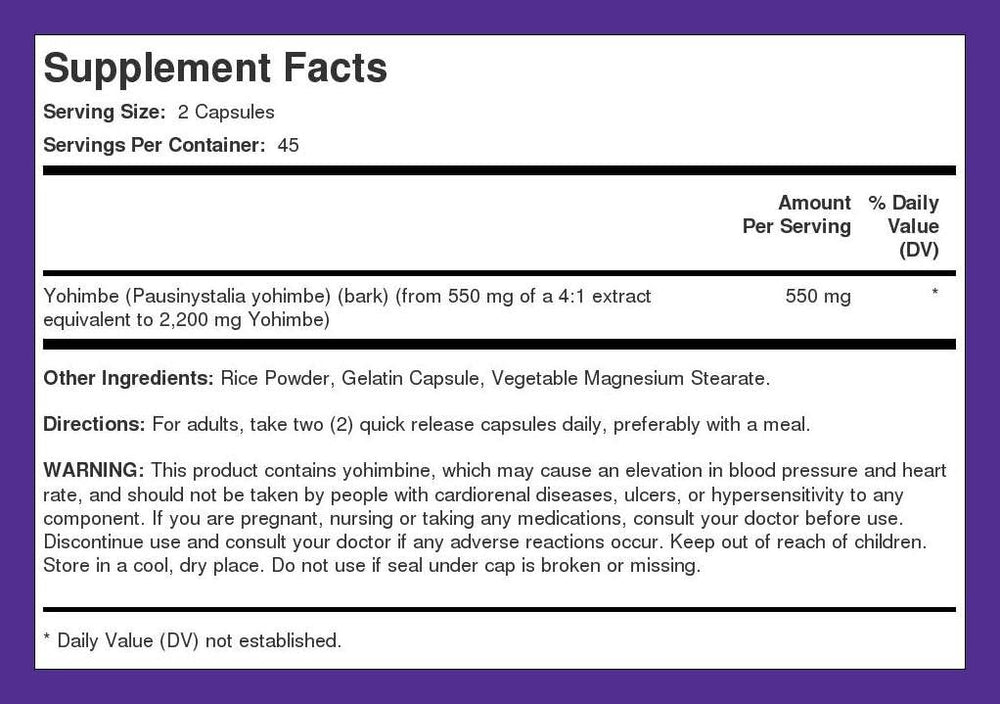 Suplemento Yohimbe Suplementos para hombres 2200 mg 180 cáp