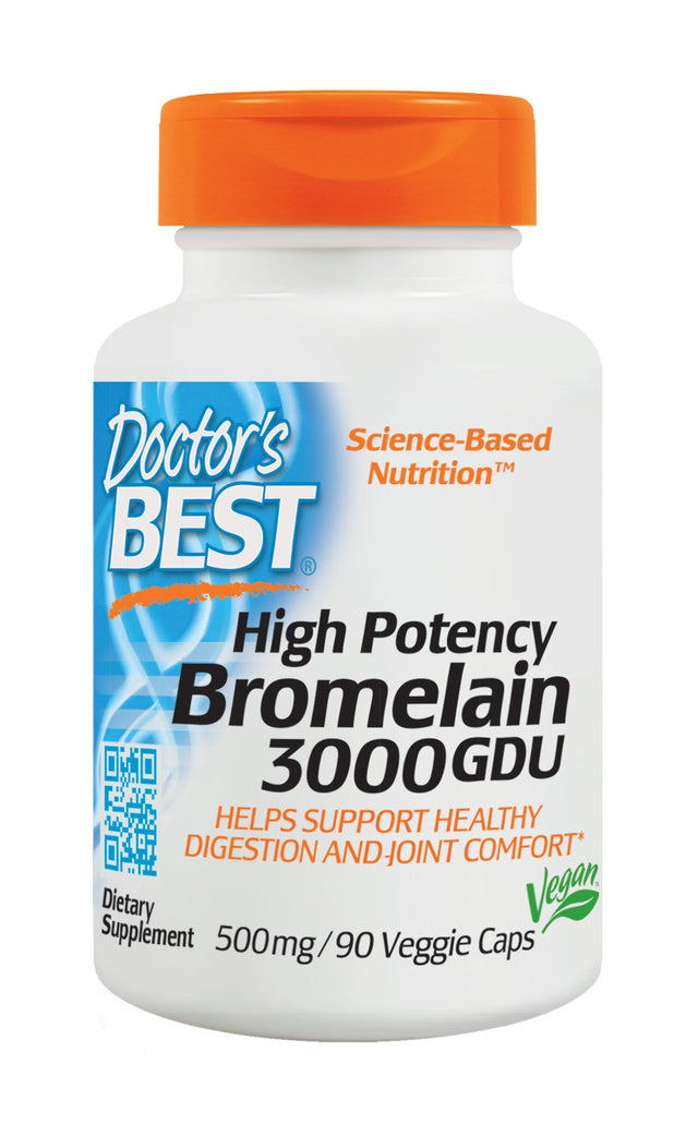 *** Características *** La bromelina es una enzima derivada del tallo y la fruta de piña que tiene propiedades proteolíticas (digestión de proteínas). La bromelina encontrada en Best 3000 GDU Bromelain es la forma más potente de esta enzima que se encuentra en el mercado. El 3000 GDU se refiere a la estandarización de la potencia enzimática y refleja la calidad de la materia prima utilizada en el producto.