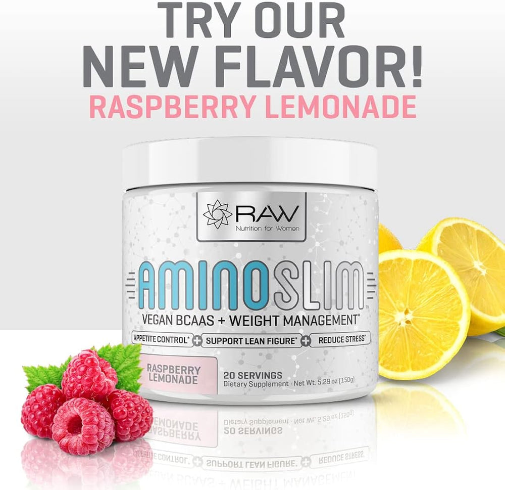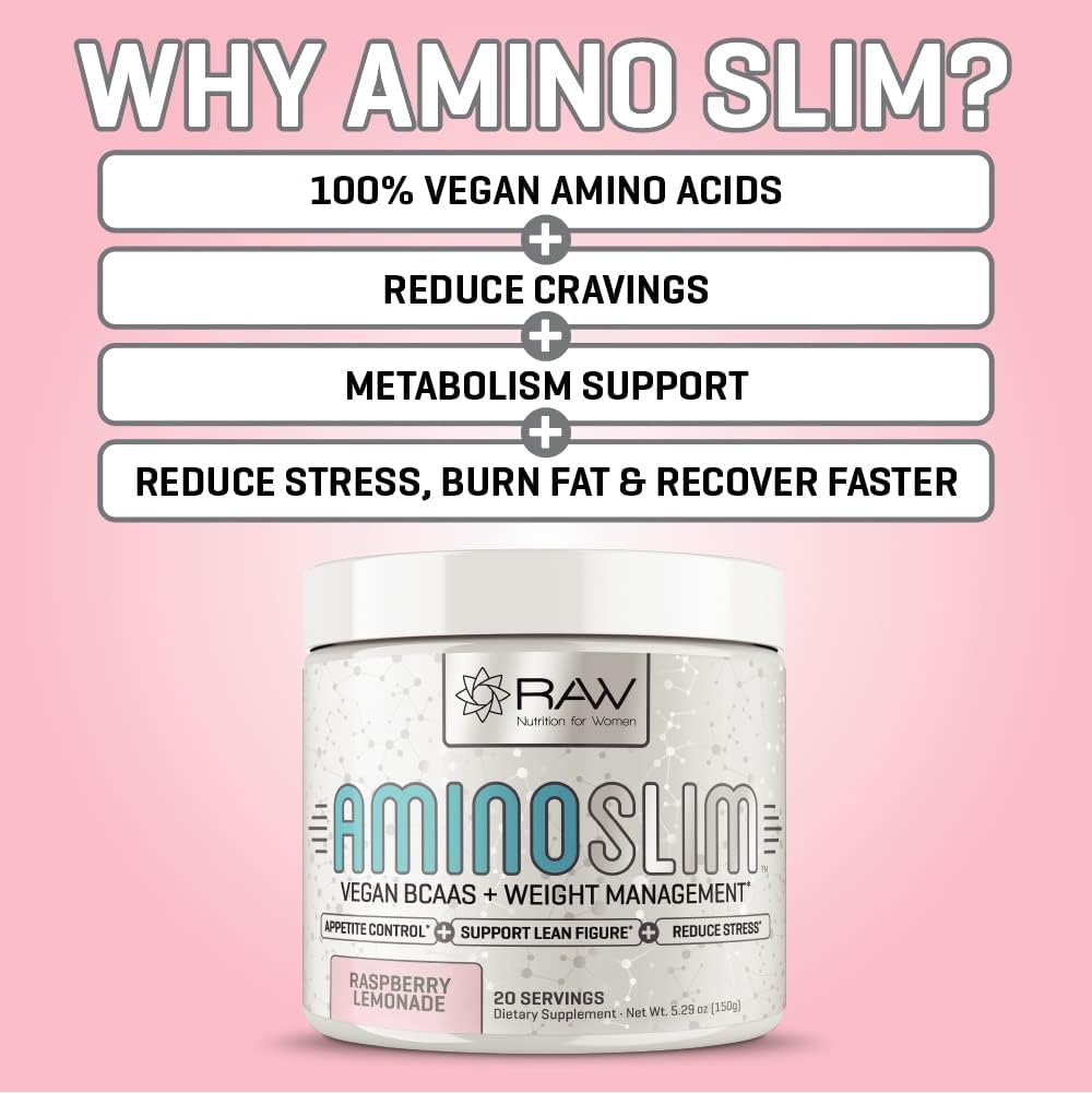 Pierde peso ráp aumenta tu estado de ánimo: Amino Slim es la mezcla ideal para batidos y bebidas para apoyar la recuperación muscu la pérdida de grasa y un estado de ánimo mejorado. Nuestra fórmula ina BCAA fermentado prem L-Glutamina de calidad Ky KSM-66 Ashwagandha clínicamente prob azafrán Satiereal e InstAminos veganos. Este es el estándar Raw en ingredientes de alta calidad que juntos forman el batido definitivo de pérdida de peso. Persigue tu cuerpo magro ideal: los ingredientes probados ofrecen más eficacia que los batidos regulares para pérdida de peso. Amino Slim está específicamente formulado para incluir ingredientes que se dirigen a la supresión del apetito para ayudar a mantener tu hambre diario y antojos de azúcar manejables. Prepárate para tonificar: los productos crudos se construyen alrededor de la ciencia del bienestar y n una verdadera diferencia positiva en nuestros cuerpos. Ya sea que quieras construir músculo ma perder algo de peso o simplemente mantenerte en fo obtener (y mantener) una barriga plana nunca ha sido tan fácil. Relajante pérdida de peso de día y noche: Amino Slim es libre de cafeína y se puede utilizar en cualquier momento del día o la noche. Entre las muchas propiedades de bienestar de ashwagan su capacidad para relajar la mente y el cuerpo hacen que sea popular tomar antes de acostarse para aumentar el metabolismo y ayudar a la calidad del sueño. Ingredientes: L-Glutamina Vegan KyowaQuali L-Leucina Vegan InstaAmin L-Isoleucina Vegan InstaAmin L-Valine Vegan InstaAmin KSM-66 Ashwagandha (Withania somnifera (raíz) extract) (estandarizado al mínimo 5 total con anolidos azafrán Satiereal ((Azafron (Azafron (azafron (azafrán (azafrán (azafrán). Crocus sativus L.) [Stigma] Nombre del sabor: limonada de frambuesa
