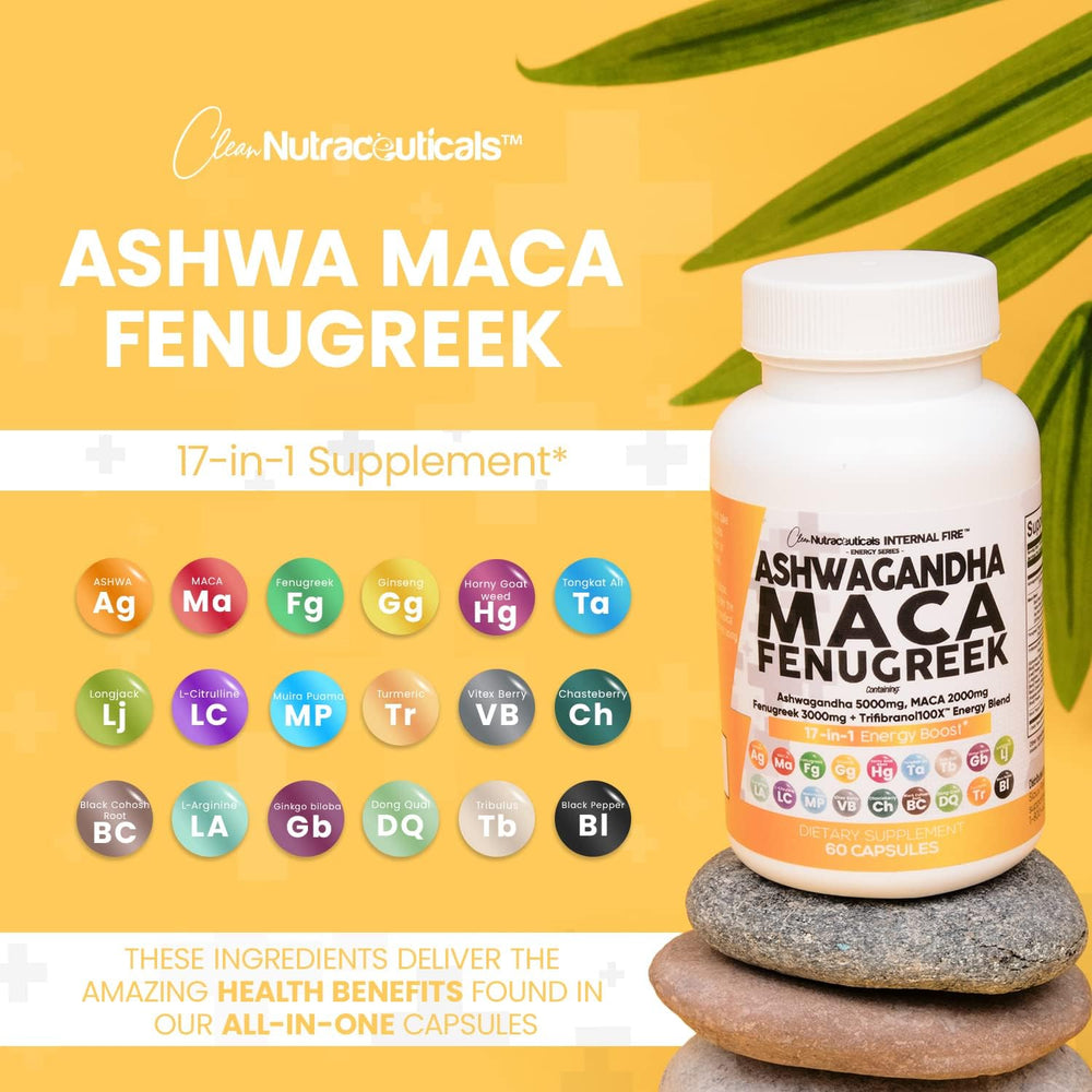 Suplementos avanzados de Ashwagandha para aliviar el estrés y el estado de ánimo: nuestras cápsulas de raíz de Ashwagandha contienen 17 ingredientes potentes de raíz de maca ne de raíz de maca r de raíz de maca amarilla y semillas de fenogreco. Las cápsulas de maca se han inado con pastillas de fenogreco y pastillas de Ashwagandha para hacer uno de los suplementos de alivio del estrés 17 en 1 más inclusivos del mundo disponibles. Esta es una potente alternativa a las gomitas de ashwagan café de m té de fenogreco y gomitas de raíz de maca. La máxima fuerza de Ashwagandha con cápsulas de raíz de maca que has estado buscando: el fuego interno de Clean Nutra proporciona 3 suplementos herbales de dosis leta e que contienen una raíz de maca p cápsulas de fenogreco y raíz de Ashwagandha en una práctica dosis de 2 cápsulas. Más fuerte que Ashwagandha 600mg y Ashwagandha 300mg. Por últ las cápsulas de raíz de maca roja para mujeres y las cápsulas de raíz de maca negra para hombres se han inado en una solución que también contiene un suplemento de fenogreco. Presentamos la mezcla Trifibranol100X - Además de las cápsulas de semillas de fenogreco y las píldoras de raíz de m nuestra fórmula también contiene más de una docena de ingredientes más potentes Tongkat Ali y el extracto de ginseng Red Panax. Este potente suplemento de apoyo al estado de ánimo también tiene extracto de pimienta negra para ayudar a maximizar la absorción y eficacia de los 17 ingredientes. Muchos prefieren esto en aración con las cápsulas de aswagandh gomitas de aswagan semillas de fenogreco orgáni maca orgánica y ashwagandha orgánica. Potente inación de hierbas naturales y raíces: el fuego interno está rebosante de potentes suplementos de ashwagandha p ginseng de maca y fenogreco. Limpia esos innumerables productos ayurveda en tu armario de suplementos y reemplázalos con solo 2 cápsulas al día. Ade las cápsulas de fenogreco para mujeres también se utilizan suplementos de lactancia materna y para apoyo a la lactancia. Mejor alternativa a las cápsulas orgánicas lisas de ashwagan café de maca para homb ashwagandha para hombres y raíz de maca para mujeres. Ingredientes veterinados y de confianza: nos enorgullecemos de ofrecer suplementos de estrés de calidad para nuestro s. Nuestras fórmulas de suplemento de maca están fabricadas con orgullo en los Estados Unidos en una instalación registrada y certificada. Sin conservantes ni rellenos innecesarios. Algunos otros nombres y formas nes son suplementos de ashwan de maca orgánico para muje raíz de maca para homb ginseng de maca para homb raíz de m gotas líquidas de raíz de m cápsulas orgánicas de raíz de maca y maca negra para hombres.