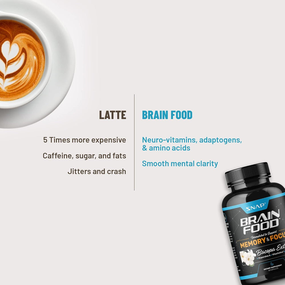Aumenta la salud y la memoria del cerebro: nuestra fórmula perfeccionada suplemento nootrópico utiliza ingredientes naturales y orgánicos y elimina la homocisteína, un prooxidante asociado con la pérdida de memoria relacionada con la edad que puede ayudar a prevenir la atrofia cerebral. Las píldoras de enfoque de alimentos TheBrain contienen Huperzine A que ayudará a aumentar los niveles de neurotransmisores en el cerebro para adultos. Mejora el estado de ánimo y el procesamiento: los ingredientes del suplemento potenciador del cerebro trabajan para optimizar el aprendizaje, mejorar la memoria, ráfagas inteligentes y alerta para cualquier situación como la escuela, el trabajo e incluso juegos. Bacopa con vitacolina y colina ayuda a mejorar la velocidad en el procesamiento de información visual y aumentar las funciones cognitivas. Reduce la fatiga mental y la niebla: los nootrópicos son esenciales para apoyar la claridad mental y el enfoque. La comida cerebral aumenta el DMAE que se produce naturalmente en el cuerpo, lo que funciona para ayudar a las células nerviosas a enviar señales. La acetilcolina ayuda a dormir REM, contracciones musculares y respuestas al dolor. Lo mejor para mejorar la función cerebral: nos esforzamos por proporcionar la más alta calidad de enfoque y suplemento energético, para elevar y nutrir tu mente con 20 neurovitaminas, adaptógenos y aminoácidos para ayudarte a lograr el alfa. Brain Food es libre de gluten, sin OMG y no tiene azúcares añadidos.