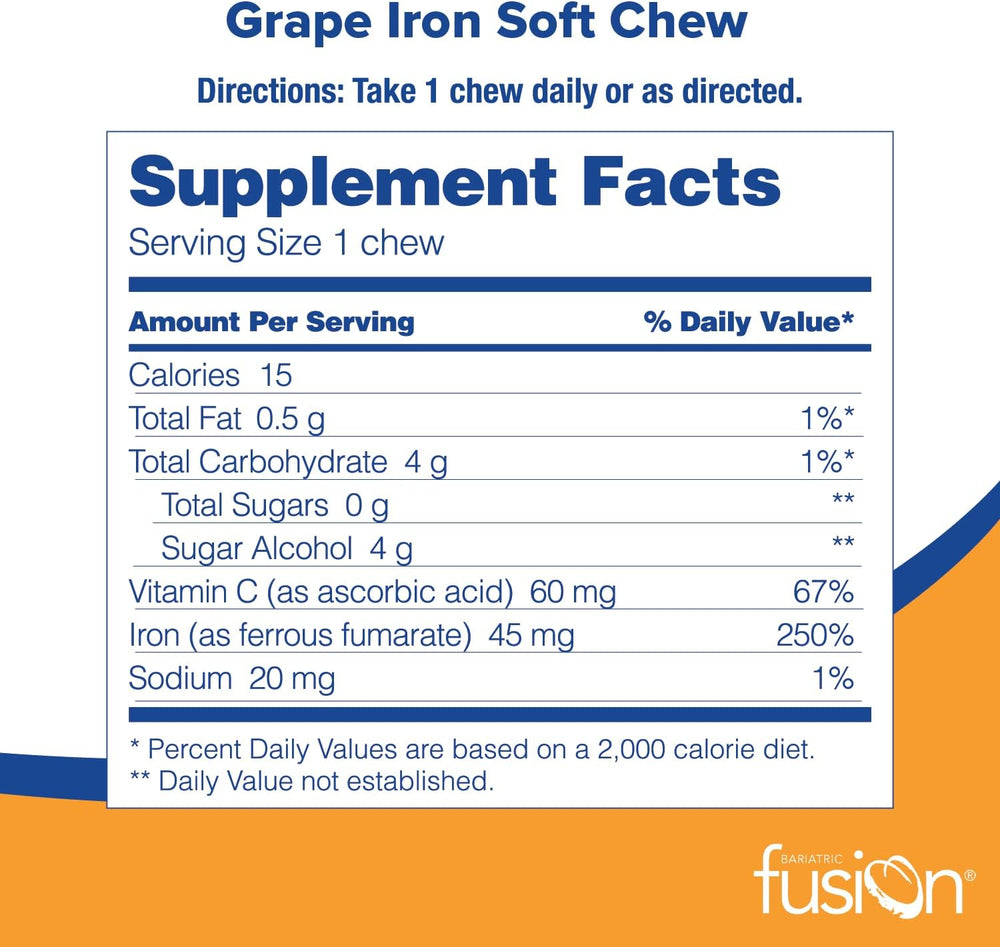 Régimen diario de gran sabor y rentable. La vitamina C Iron Plus de Bariatric Fusion es un regalo absolutamente delicioso para llevar para aquellos con un diente dulce. El uso sugerido es tomar 1 masticable suave al día. Ser un suplemento nutricional envuelto individualmente hace que sea extremadamente conveniente para el uso en movimiento. 45 mg de hierro en cada masticable más 60 mg de vitaminas C para aumentar la absorción de hierro. Nuestros suplementos bariátricos están formulados específicamente para cirugías bariátri incluyendo gastrectomía de ma derivación gástr banda de regazo y pacientes con globos intragástricos. Nuestros suplementos bariátricos fueron diseñados y formulados por un equipo de profesionales bariátricos para maximizar la absorción para que obtengas una nutrición adecuada para tu cuerpo.
