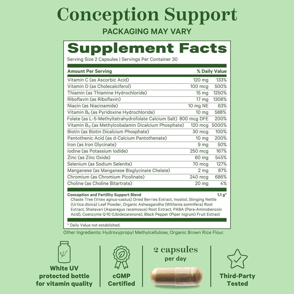 Ayuda natural para la fertilidad: proporciona vitaminas y nutrientes esenciales para apoyar la fertilidad natural y la concepción. 60 cápsulas vegetarianas en total. Salud reproductiva: apoya el ciclo reproductivo natural de una mujer. Se r enda tomar todos los días antes del inicio de tu ciclo. Ten en cuenta que este producto puede afectar tu ovulación y o ciclo menstrual; consulta con tu médico antes de usar. Limpieza: elaborado sin glu tr láct azúcares edulcoran + más. Probado por terceros. Todos los elementos esenciales: incluye ingredientes cl bayas de árbol casto (Vit mio-inosi fol vitamina vitamin vitami y z para apoyar la concepción y la salud reproductiva.